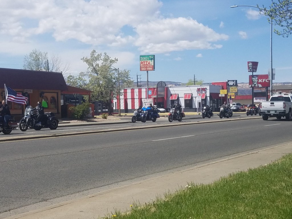 11:58: A loud roar coming from the direction of First Street is revealed to be a group of bikers 15 to 20 strong. They stick together in a group which is keeping cars from passing them.