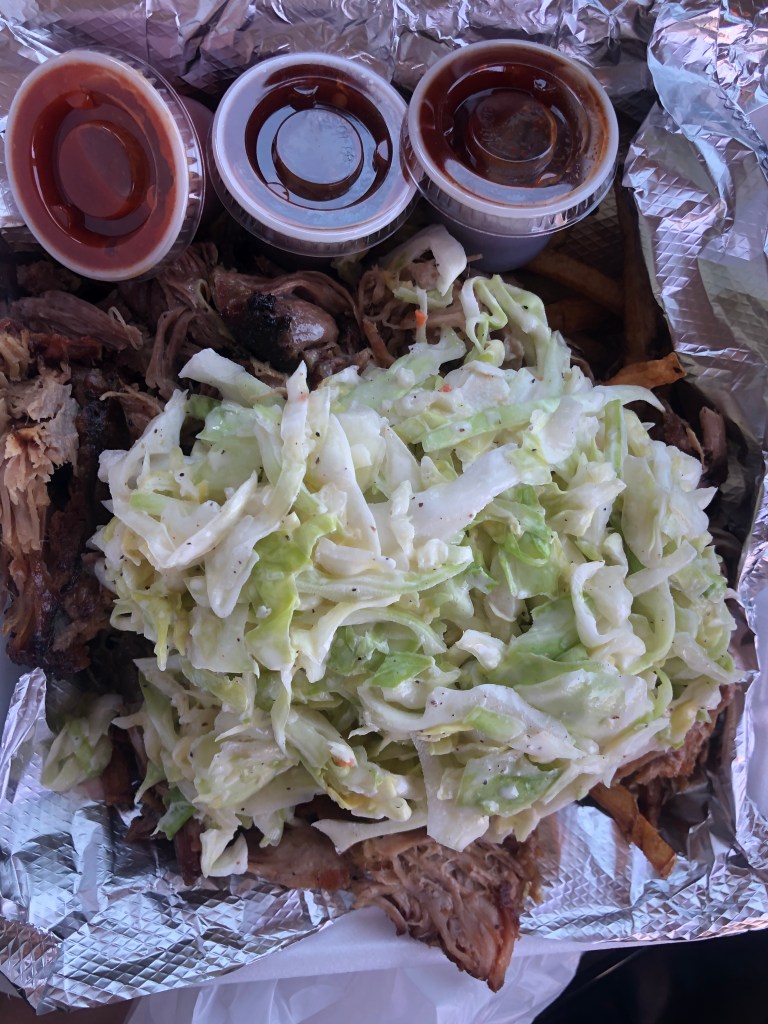 This dish stays true to its name with a generous portion of fresh cut fries covered with smoked ┉Shredded pork and topped off with homemade coleslaw. Paired with Big Mike’s sweet or hot Smokehouse barbecue sauce, this dish is sure to make everyone BBQ lovers.