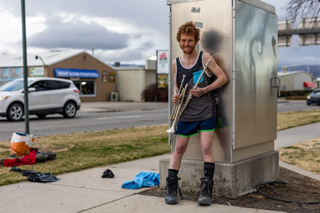 since 2022 and plays instruments on the streets to make an income. Summer Fredlund/March 12, 2023.
