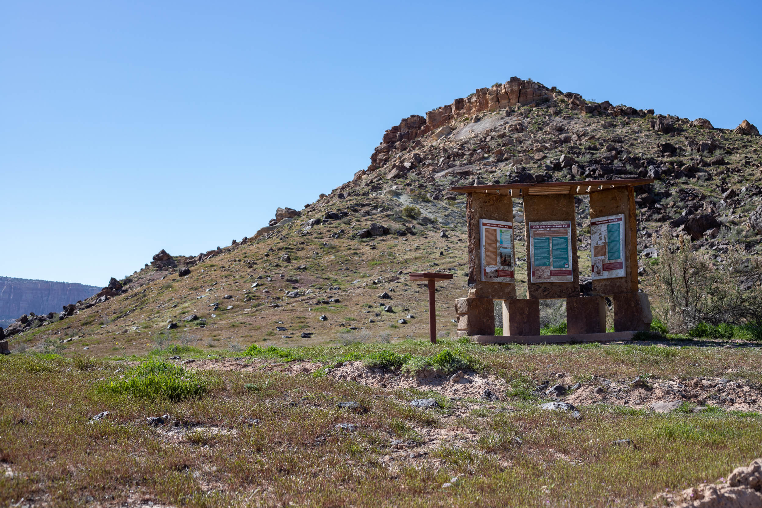 Many dinosaur skeletons and remains were found in Colorado. Grand Junction is no exception. According to the informational packet available, Riggs Hill is the location where the first Brachiosaurus bone was discovered by Elmer Riggs in 1900. A cast of the bone sits along the trail for hikers to enjoy, while other fossils may be found in the dirt surrounding these small hills.