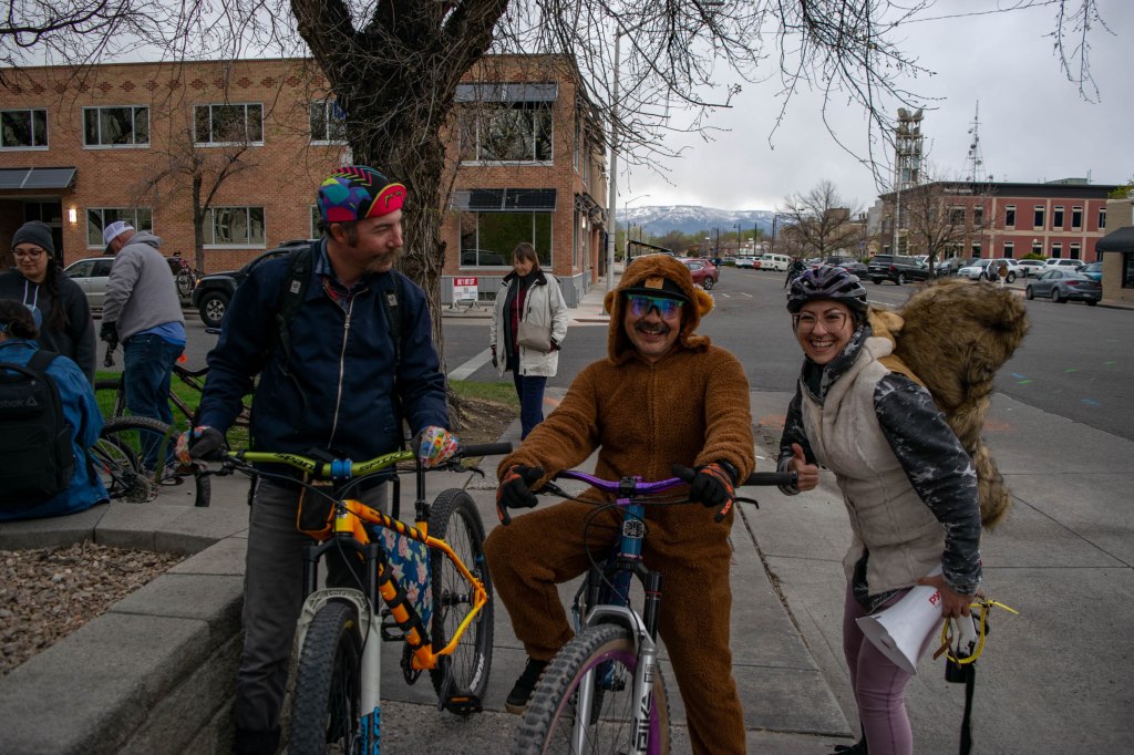 A few of the leaders of Grand Junction Bike Night, wearing festive animal costumes for the Earth Day theme of the week. Each week, the organizers choose a different theme that participants will dress as. (Jillian Richardson, April 21).