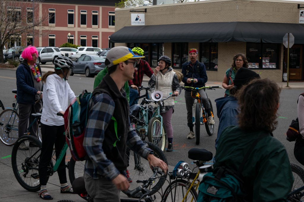 One of the leaders announces the route of the week. Each week, the ride ends at a local brewery. This week’s destination was Gemini Brewing. (Jillian Richardson, April 21).