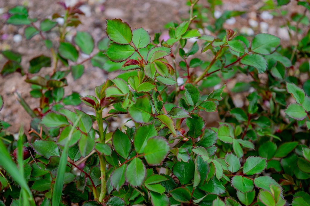 A rosebush beginning to show little buds displayed in Grand Junction, Colorado.