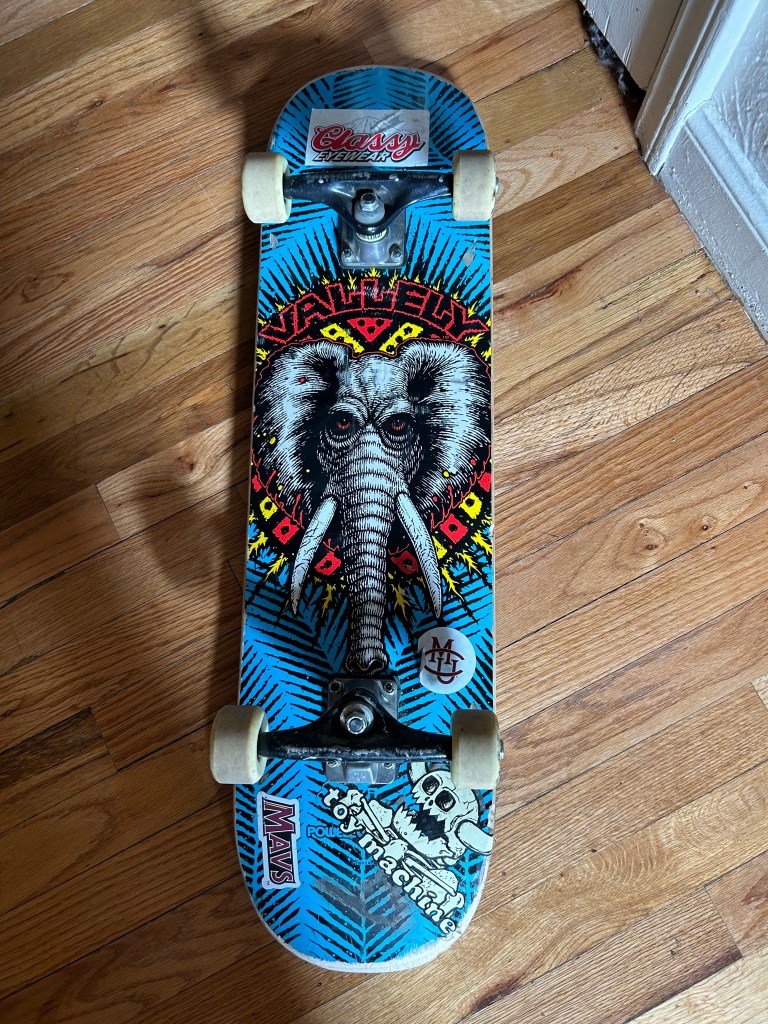 Alec Thudium’s skateboard deck, purchased from Mutual Friends in 2020. (Collin McKenna, May 2023).