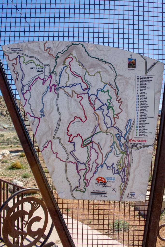 The Lunch Loop Trailhead is made up of several trails with some of which are for biking only. Colorado National Monument.