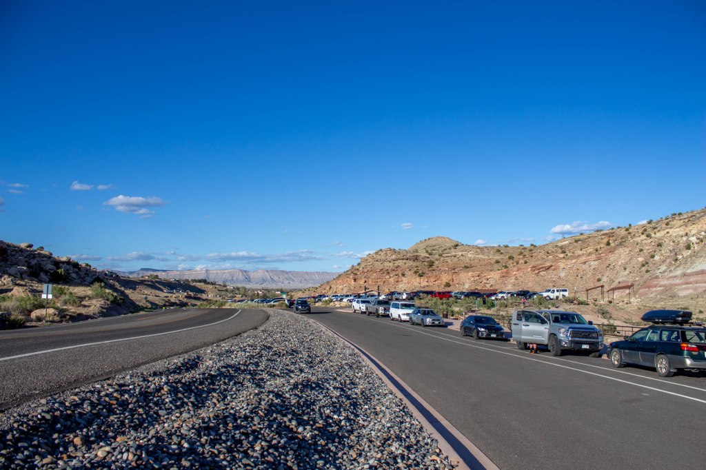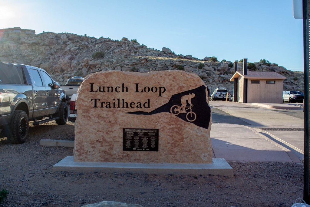 The main parking lot for the Lunch Loop trails is located off of Monument Rd and is about 1.9 mi from the entrance of the Colorado National Monument.