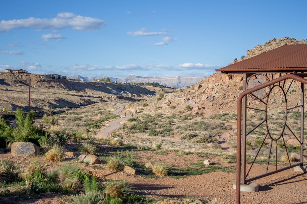 All the trails at Lunch Loops are accessible to the public, which is excellent for the community here in Grand Junction. You can mountain bike, hike, and walk your dog, all for free.