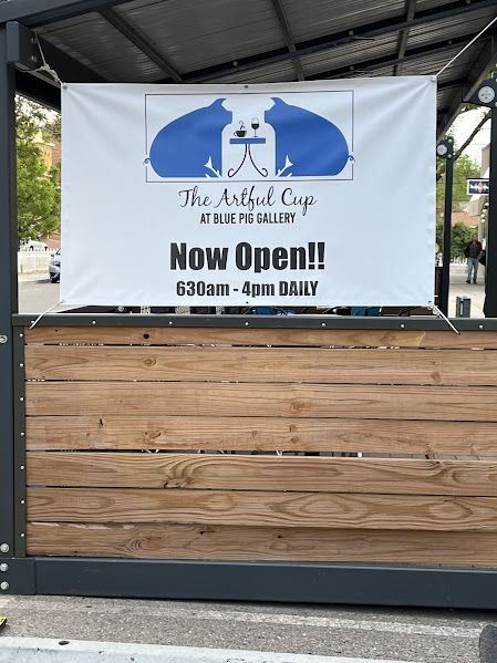 Geared to accommodate the local community members the coffee shop opens at 6:30 in the morning to allow the locals to grab a coffee and a treat on the way to start their day. The coffee shop may open at 6:30, but the gallery opens at 10:00 AM to allow the staff to prepare for the crowd.