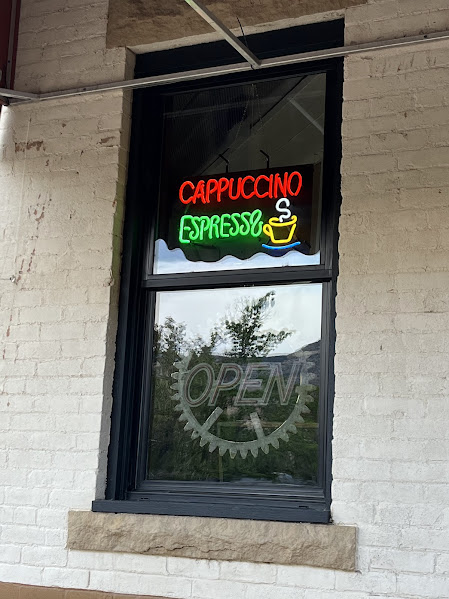 Individuals who purchase coffee from the shop can walk around the art gallery holding their drink. Throughout this historical building, art is displayed all across the walls brightening up the gallery and drawing in the eyes of many individuals traveling throughout the business.