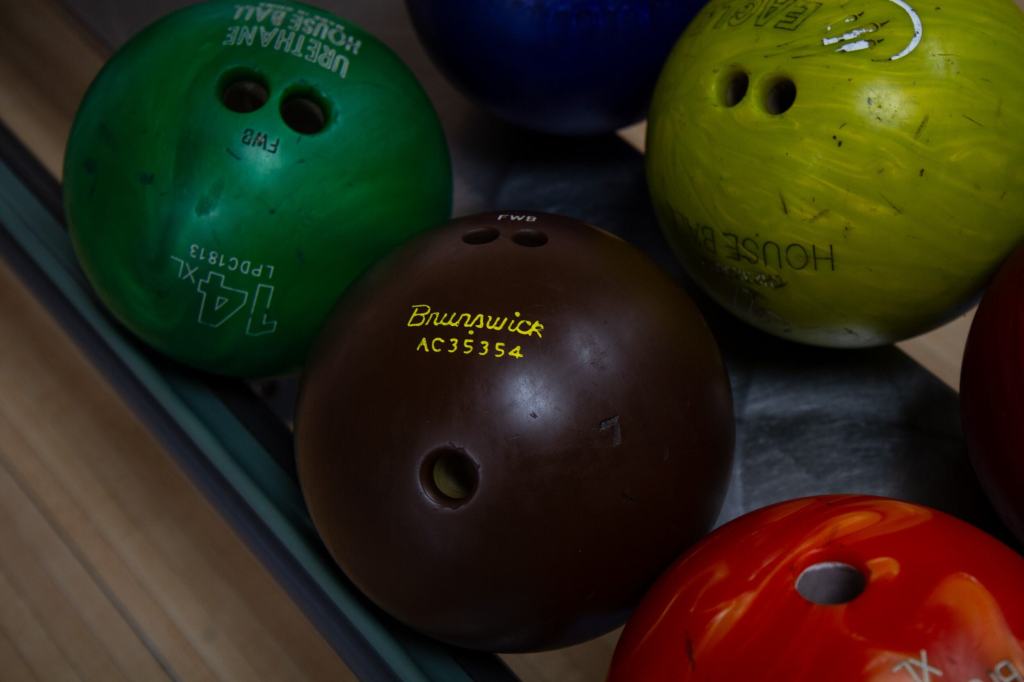 Years of strikes, spares, and gutter balls have left their mark, each ball a quiet witness to games long past. (Adelaide Martinsen, April 2025)