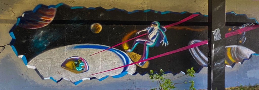 Mural art on the streets comes and goes, and it becomes difficult to know when and where a new large mural might pop up. There are a few places that see constant traffic and have spaces large enough to accommodate the work that we see around town. The artwork keeps on changing and locations change too. There are many places where this art is covered up and never seen again. The loss can be amazing once you see some of the art people create.
